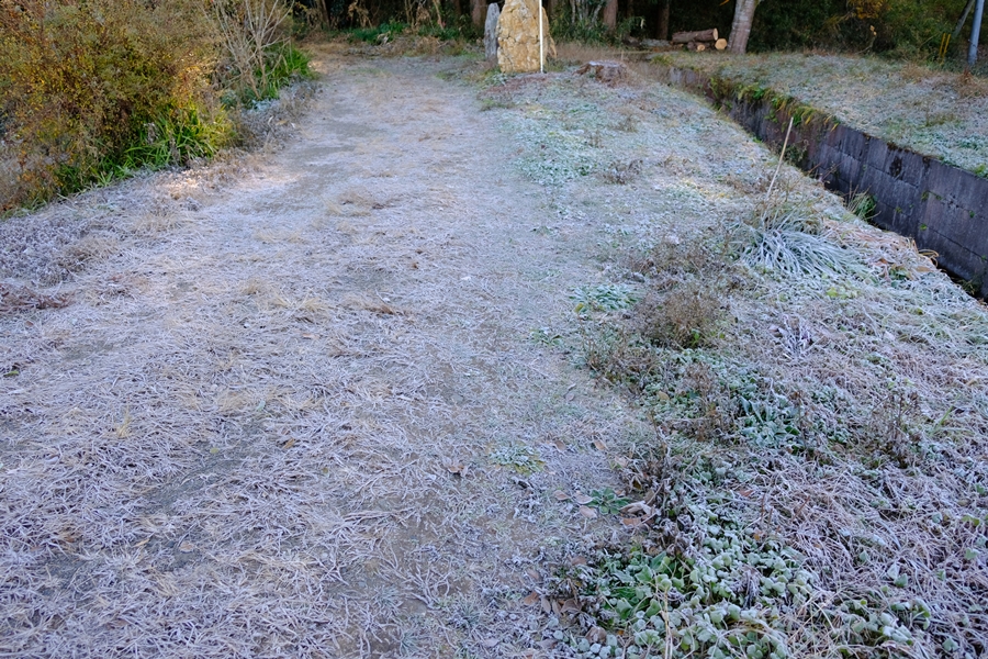 日影は霜で真っ白です