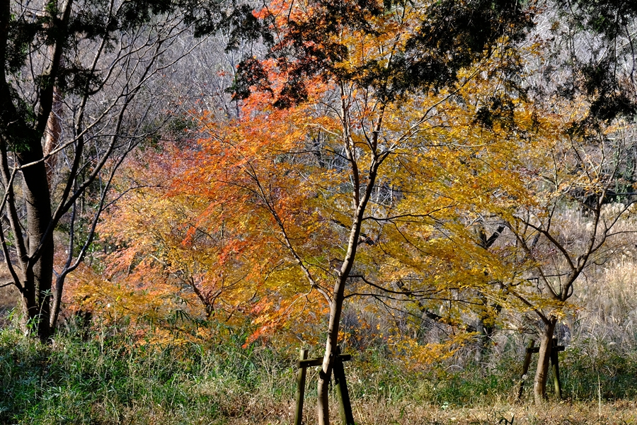 逆光で綺麗に見える紅葉を何とか切り取る