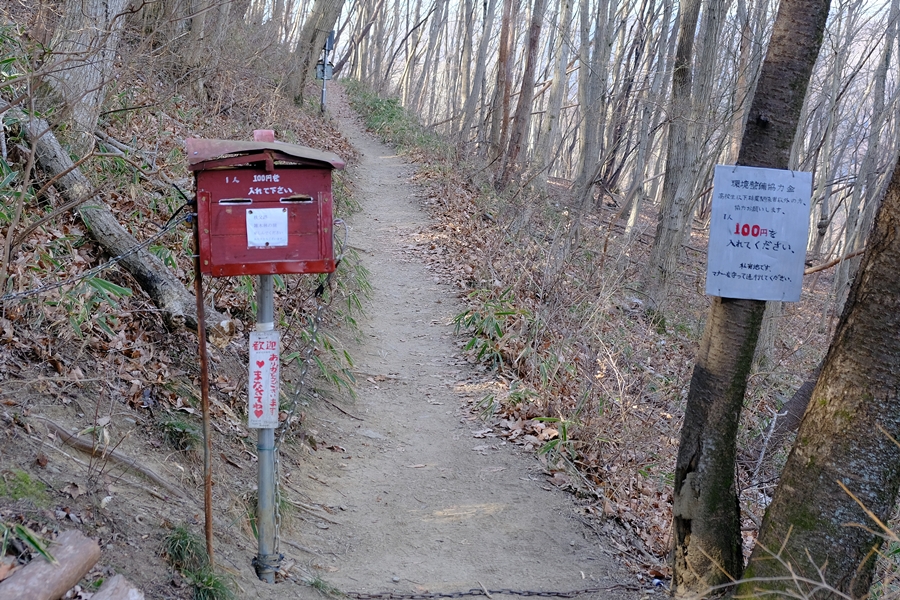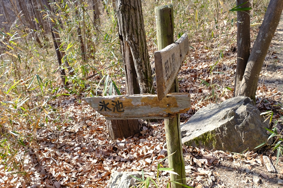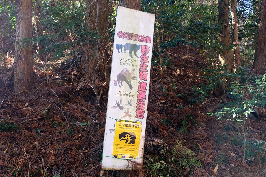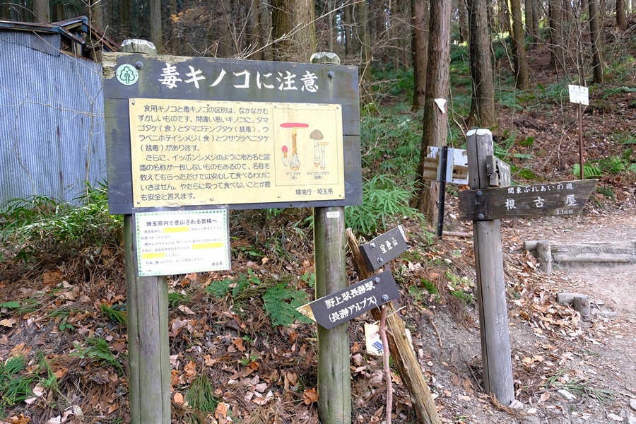 10時50分、ちょっと長い舗装道路歩きが終わり毒キノコ看板着