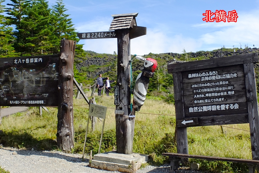 北市民セ6:00 →若葉駅6:30 →(横川SA休10)→佐久南IC8:20 →北八ヶ岳ロープウエイ山麓駅9:30 →山頂駅発10:10 →北横岳への分岐10:30 →北横岳ヒュッテ11:20 →北横岳南峰11:50 →(北峰往復)→北横岳ヒュッテ12:15着(昼食、七ツ池往復)13:00→坪庭13:30 →ロープウエイ山頂駅13:50 →(徒歩下山)ロープウエイ山麓駅15:20 →バス発15:40 →横川SA17:25(休20)→鶴ヶ島IC18:45 →北市民セ19:00 @4,500(ロープウェイ団体片道代込み)