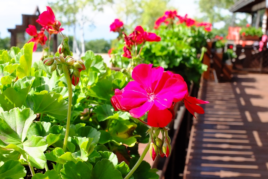 ベランダの手すり沿いにゼラニュウムが見頃だった
