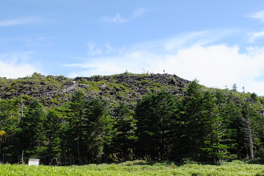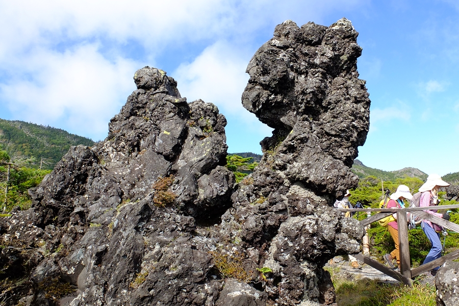 ゴツゴツ溶岩の周りは木道なので歩きやすい