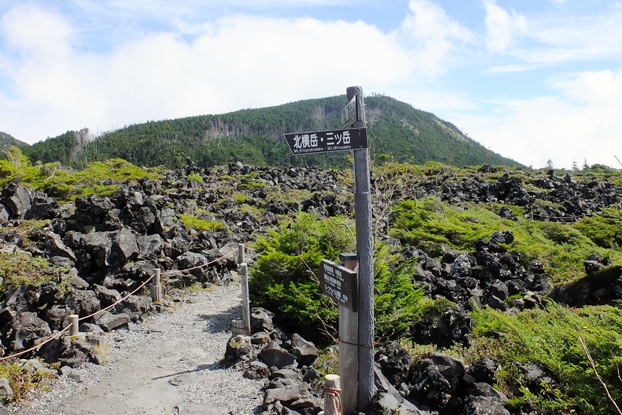 縞枯山荘から山頂駅への道との合流点
