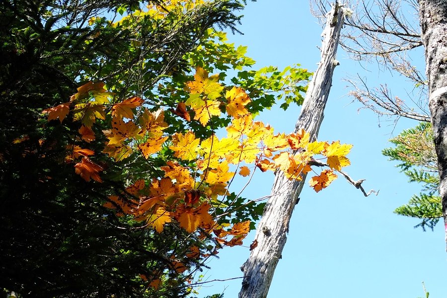 急登が終わりもうすぐ北横岳ヒュッテという所で紅葉に癒される