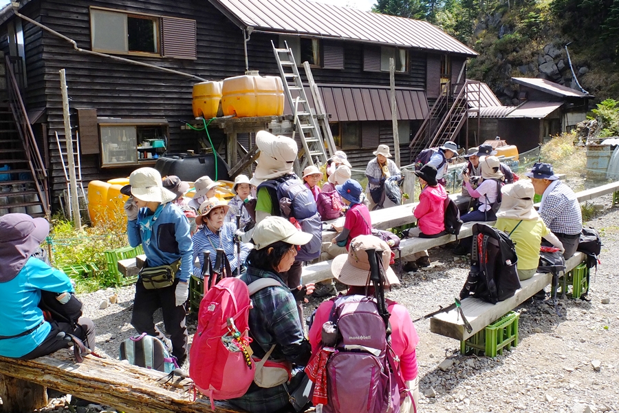 北横岳ヒュッテ到着、頂上アタック前に休憩します