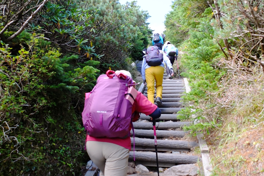 南峰手前は階段の連続