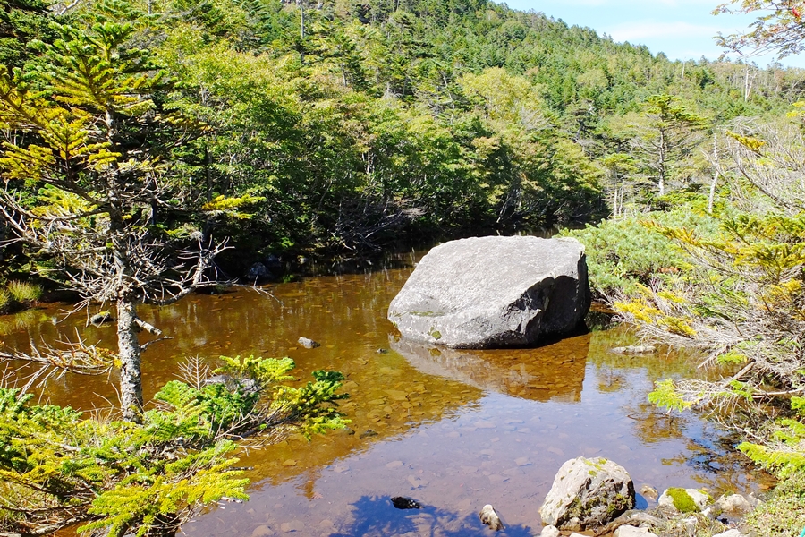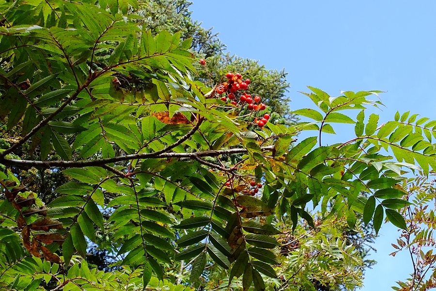 よく登ってきたなと感心するくらいの岩の急坂をナナカマドの赤い実に癒されながら下る
