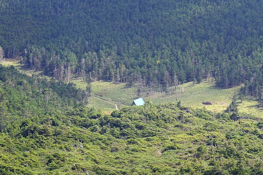 遥か下に縞枯山荘が見えてきた