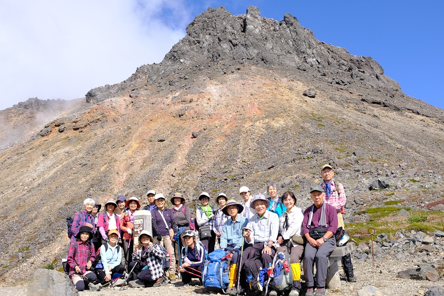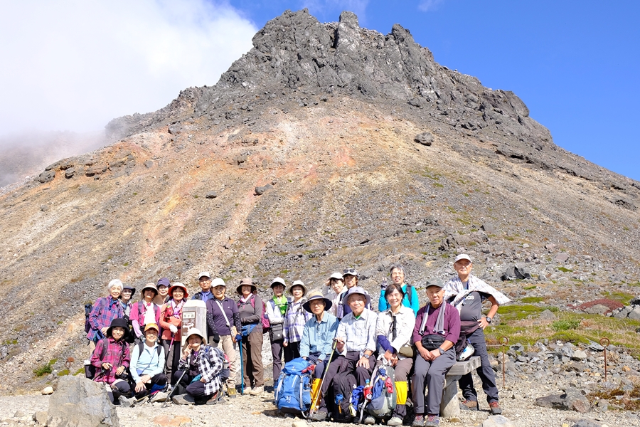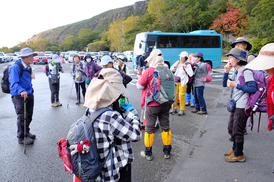 北市民セ6:00→久喜白岡JCT6:40→上河内SA7:40(休10)→ 那須IC8:20→那須岳峠の茶屋駐車場8:50着 出発9:10→ 峰の茶屋跡10:00(休15)→ 茶臼岳山頂10:50(休15)→ 鉱山跡11:30(待機組と合流)→ 牛ヶ首12:00(昼食)12:40→ 姥が平13:00→ ひょうたん池13:10→ 三斗小屋分岐14:20→ 沼原湿原15:00→ 沼原湿原駐車場15:20着バス発15:30→ 黒磯板室IC(時刻記録漏れ)→ 羽生A17:30(休10)→ 久喜白岡JCT19:10→ 鶴ヶ島IC19:40→ 北市民セ19:50 @3,500