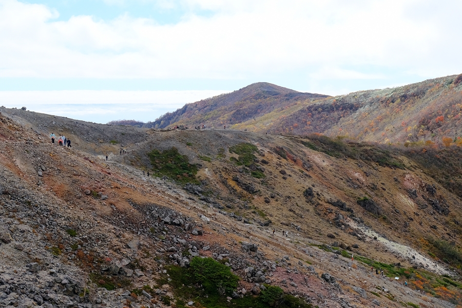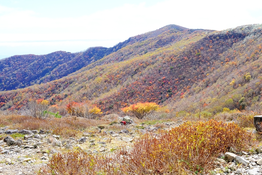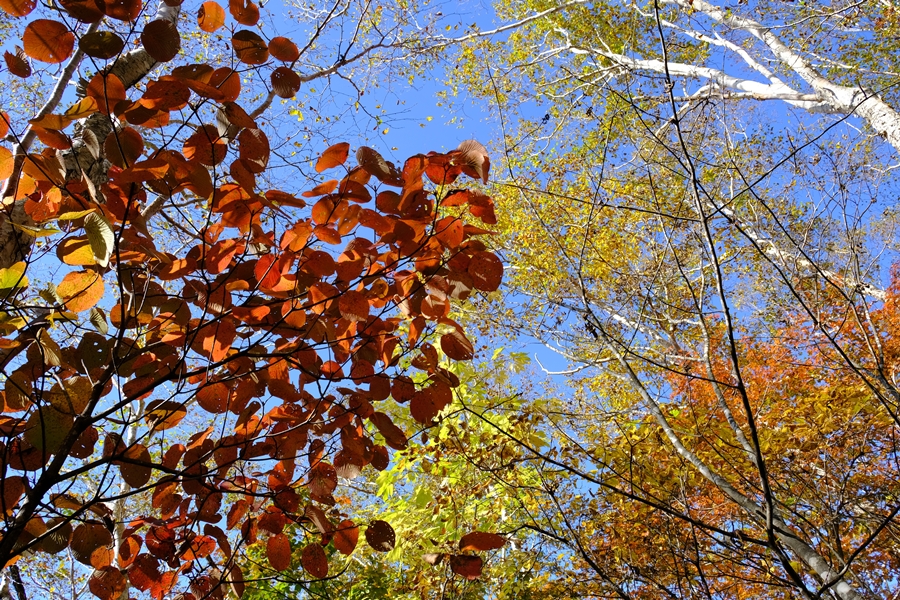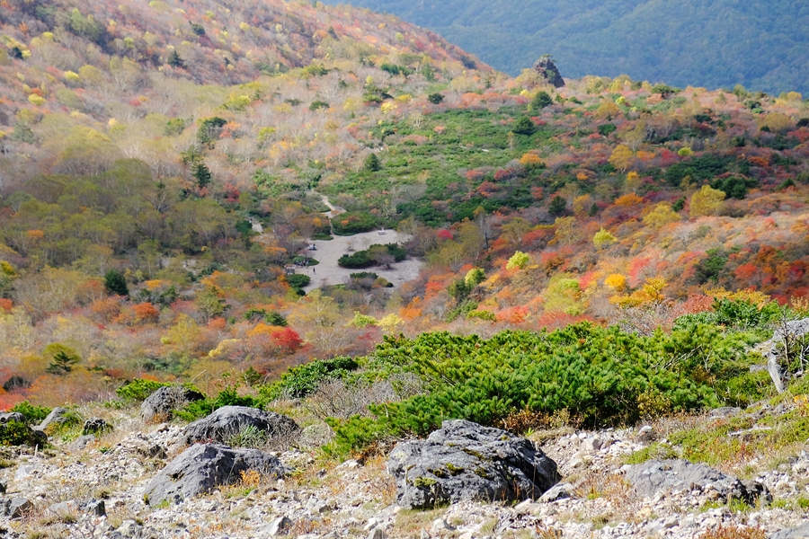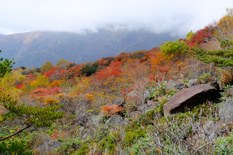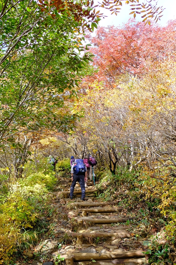 沼ッ原に向かう長い下りも色とりどりな紅葉に癒されました