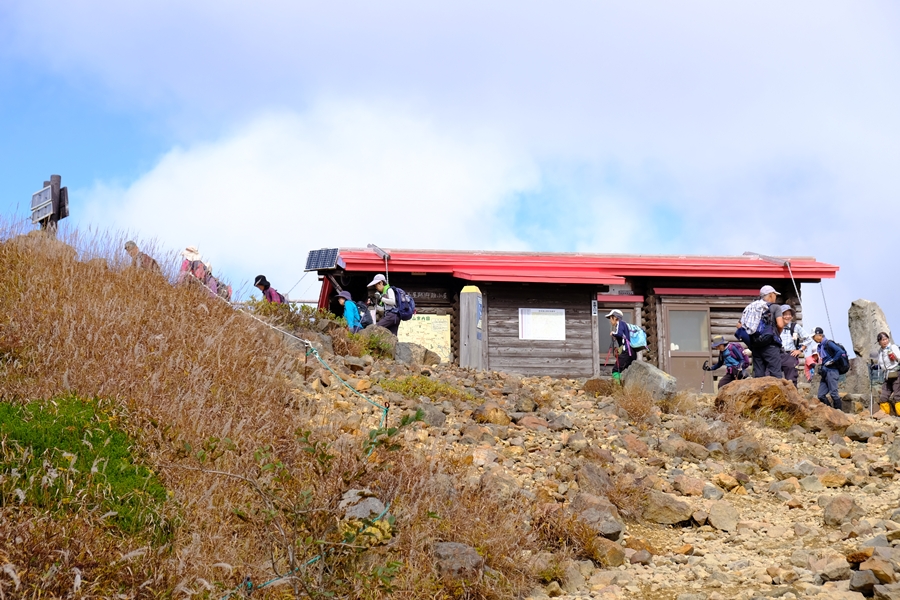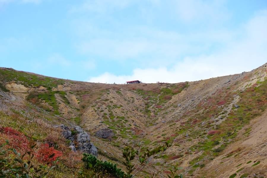遠くに峰ノ茶屋避難小屋が見えました