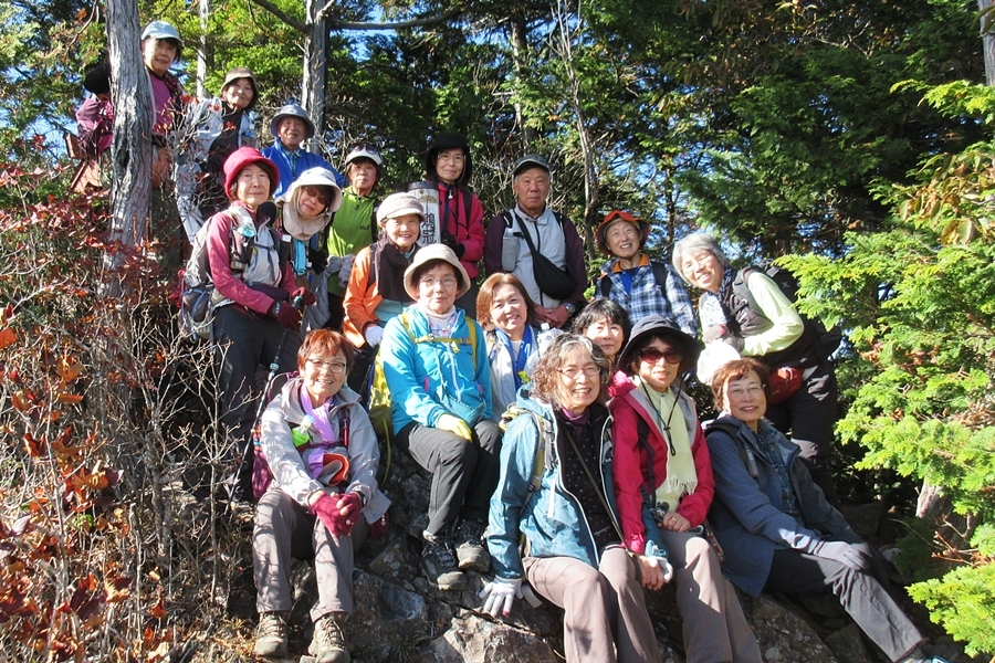 鶏冠山途中下山組と停滞組で一足早く記念撮影